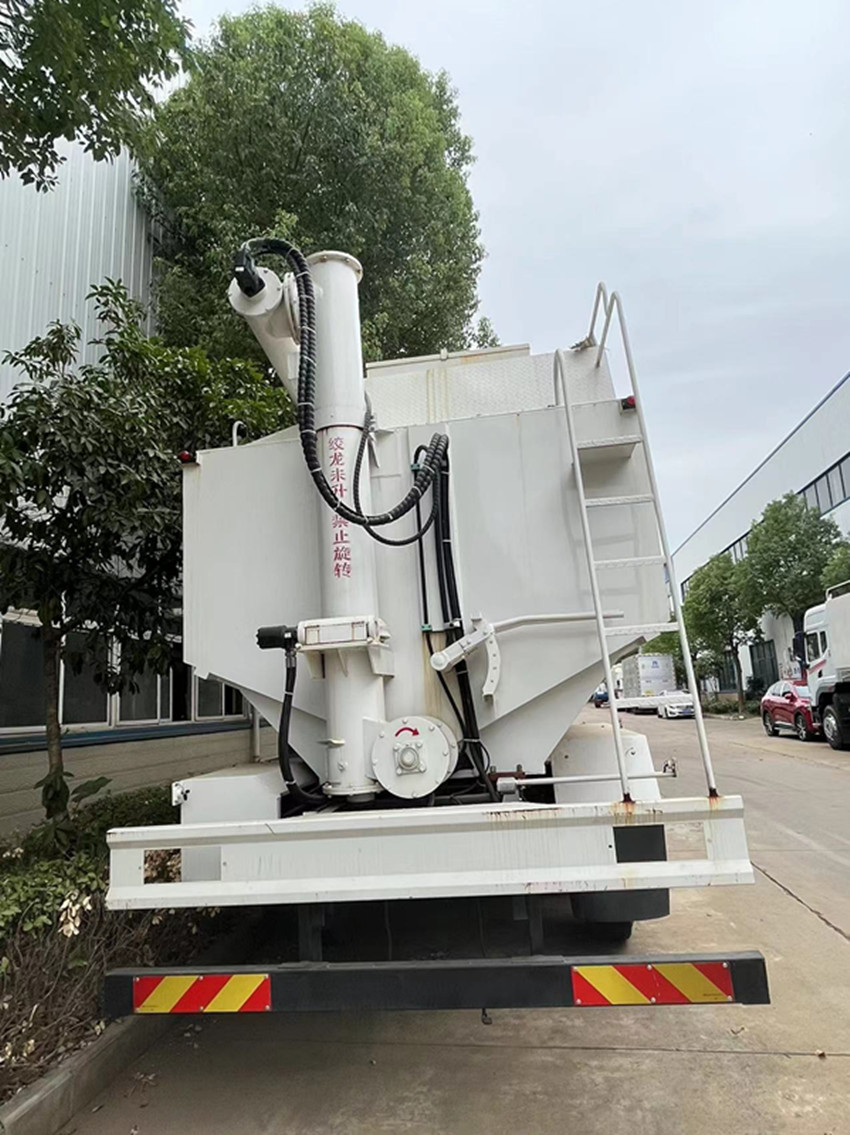 可****各分倉(cāng)卸料順序和速度,整車3條蛟龍(底部水平絞龍、尾部垂直絞龍、頂部卸料絞龍),由取力器經(jīng)車輛變速箱取力后,將動(dòng)力傳動(dòng)**高壓油泵以驅(qū)動(dòng)液壓系統(tǒng)帶動(dòng)各絞龍工作,或者由3個(gè)5.5kw 380v電機(jī)帶動(dòng)各絞龍工作,頂部絞龍液壓**舉升,可左右旋轉(zhuǎn)180°此車公告+環(huán)保+燃油齊全,全國(guó)上戶無憂!