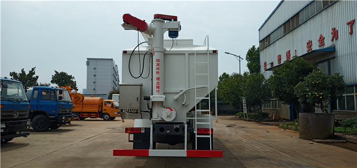 上裝配置:罐體采用4mm優(yōu)質(zhì)鈦鋼板制作,罐體分為肆個(gè)倉(cāng)(可根據(jù)用戶需求做多個(gè)分倉(cāng)),可以各分倉(cāng)卸料順序和速度,整車3條絞龍(底部水平絞龍、尾部垂直絞龍、頂部舉升絞龍),由3個(gè)5.5kw 380v電機(jī)帶動(dòng)各絞龍工作,頂部絞龍液壓舉升,可左右旋轉(zhuǎn)180° 此車公告+環(huán)保+燃油齊全,全國(guó)上戶無(wú)憂!